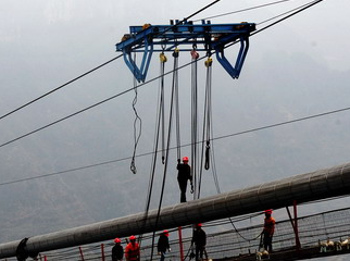 花江峽谷大橋施工貓道搭建施工項(xiàng)目正常開始,手拉葫蘆在貓道搭建過程中發(fā)揮重要作用,加快橋梁施工進(jìn)度。